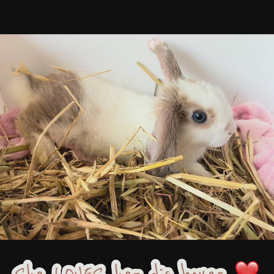 This beautiful blue‑eyed white Mini Lop girl is incredibly sweet — soft, gentle, and absolutely people‑loving. She has a calm, affectionate nature and loves being handled, making her a perfect little companion. Her bright blue eyes and soft white coat give her a stunning, angelic look that really stands out.